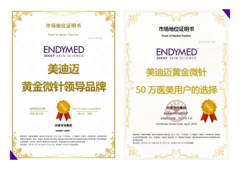 2. 市场地位证明书数据来源:尚普咨询集团;通过对比中国大陆(含 22个省、5个自治区、4个直辖市)范围内,全渠道市场,各黄金微针品牌整体经营情况,得出:美迪迈 黄金微针领导品牌;黄金微针指结合微针技术和射频技术的医疗美容仪器;领导品牌指在全国范围内,在市场、技术两个维度均处于领导地位,具备创新性且行业影响力领先的品牌。统计时间:2024年1月1日-2024年12月31日:本证明于2025年3月完成调研。