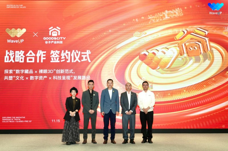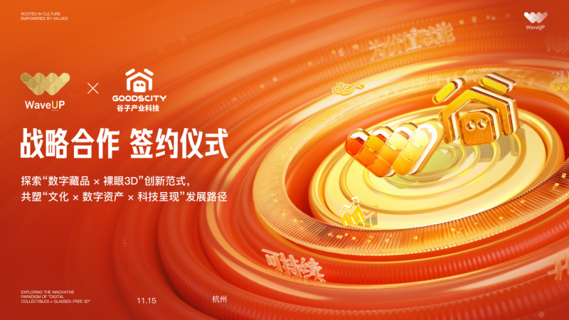 根据协议,WaveUP作为蚂蚁链生态的结构合作方,将承担文化资源的链上确权、数字资产合规管理与价值结构服务;谷子产业科技则通过其裸眼3D悬浮显示与PUF芯片确权技术,为文化数字资产开发立体、动态、沉浸式的现实呈现形态,使公众无需佩戴设备即可观看悬浮影像。